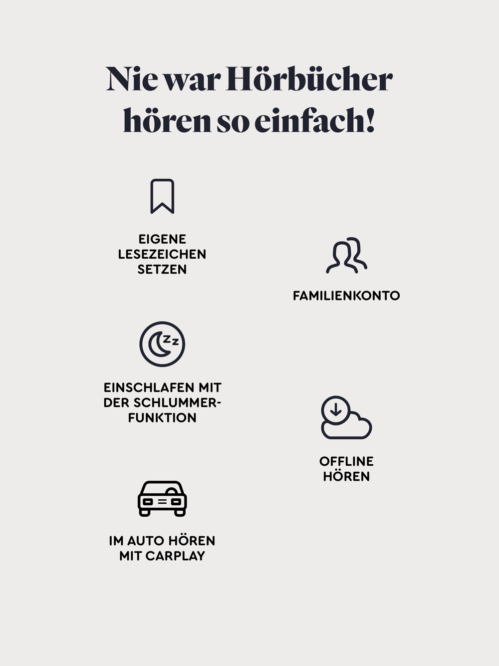Mit einem unserer BookBeat Abos hast du die Möglichkeit unbegrenzt Hörbücher zu genießen! Wann du willst, wo du willst, so viel du willst. Lade deine Hörbücher herunter und höre Krimis, Romane, Ratgeber, Kinderbücher, Comedy oder Romance auch dann, wenn du keinen Zugang zum Internet hast. Du hast sicher in Nullkommanix dein neues Lieblingshörbuch gefunden.