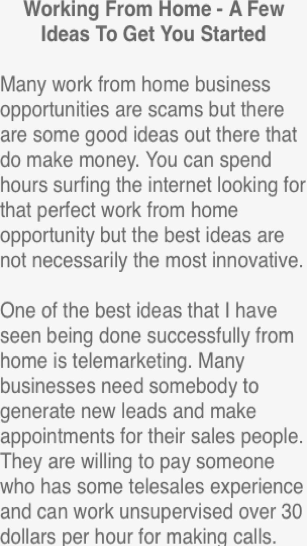 Inside the app are a host of wonderful suggestions to help you along the way. Telemarketing, VA work, web design, bookkeeping, are all covered together with lots more. Maybe you want to start your own work from home jobs business in technical writing, academic, resume, and ghost writing, making sales copy, newsletters and ezines or formatting papers and manuscripts, there are business plans and reports to help you.