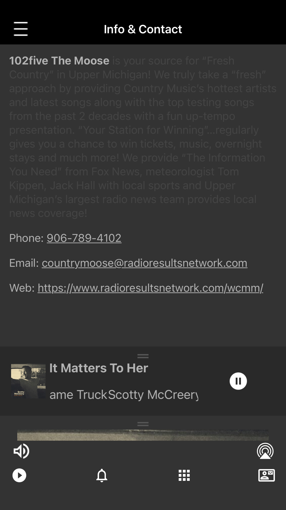 102five The Moose is your source for “Fresh Country” in Upper Michigan! We truly take a “fresh” approach by providing Country Music’s hottest artists and latest songs along with the top testing songs from the past 2 decades with a fun up-tempo presentation. “Your Station for Winning”…regularly gives you a chance to win tickets, music, overnight stays and much more! We provide “The Information You Need” from Fox News, meteorologist Tom Kippen, Jack Hall with local sports and Upper Michigan’s largest radio news team provides local news coverage!