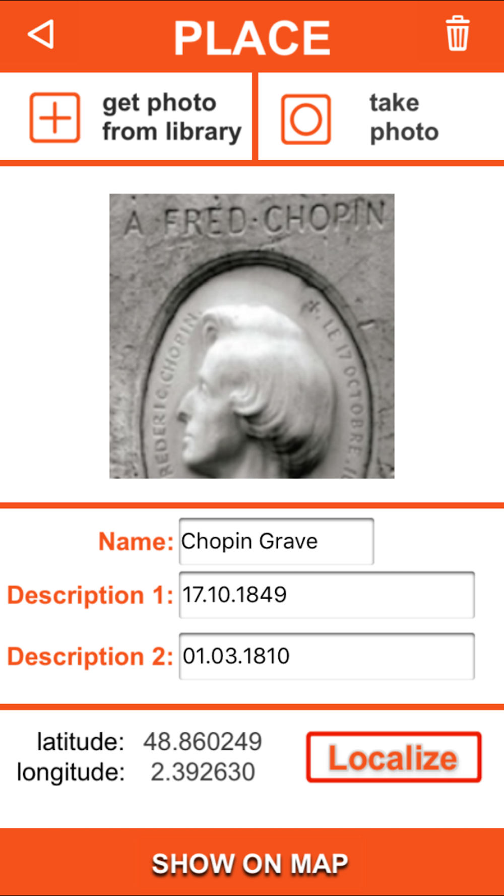 It’s very simple app to use. You can easily remember the position of your favorite places like car on parking, grave on cemetery, hides in forest etc. Just take the photo and add description - this app saves the GPS coordination of this place. Next time when you want to go back to chosen place the app shows it on the map with information about the distances from your current position.