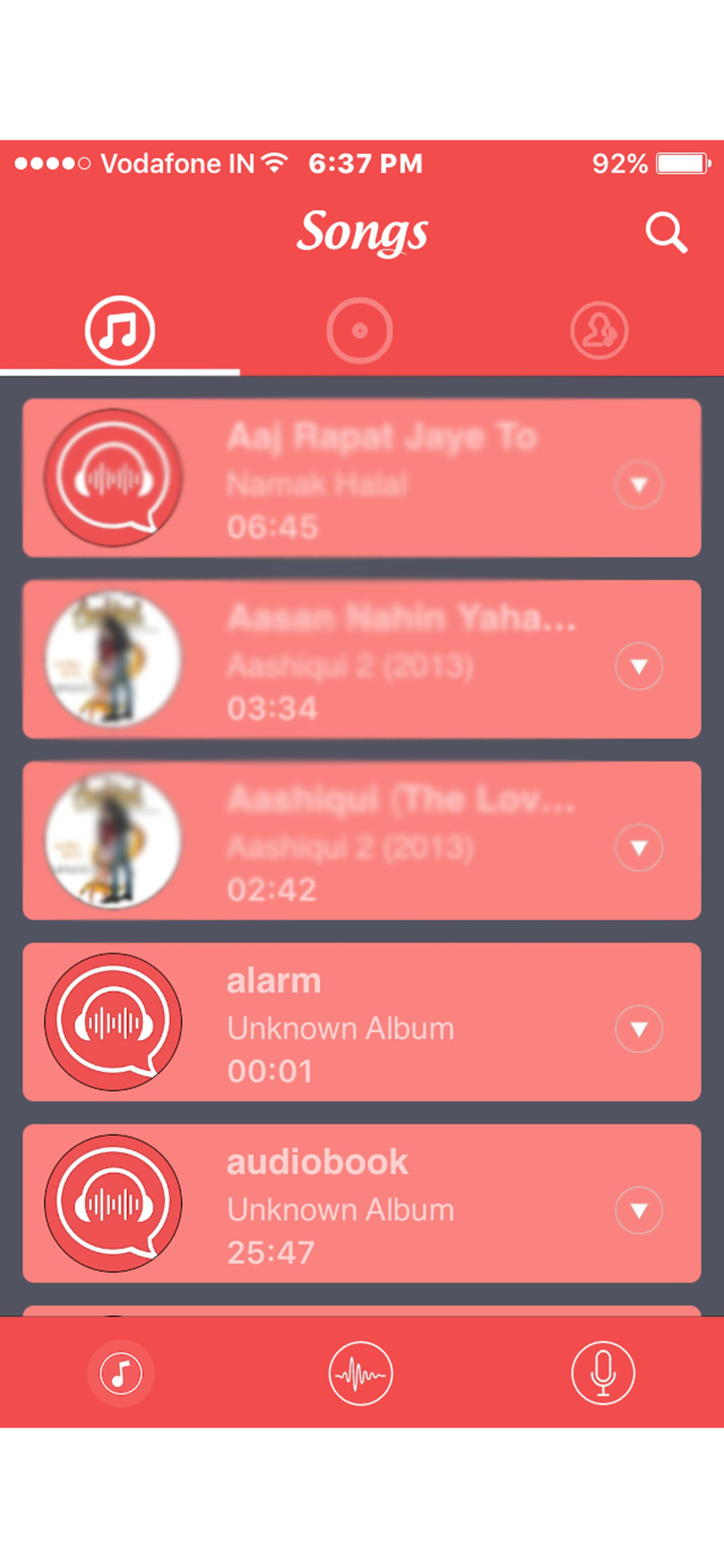 · Music library songs play with unique music player.
