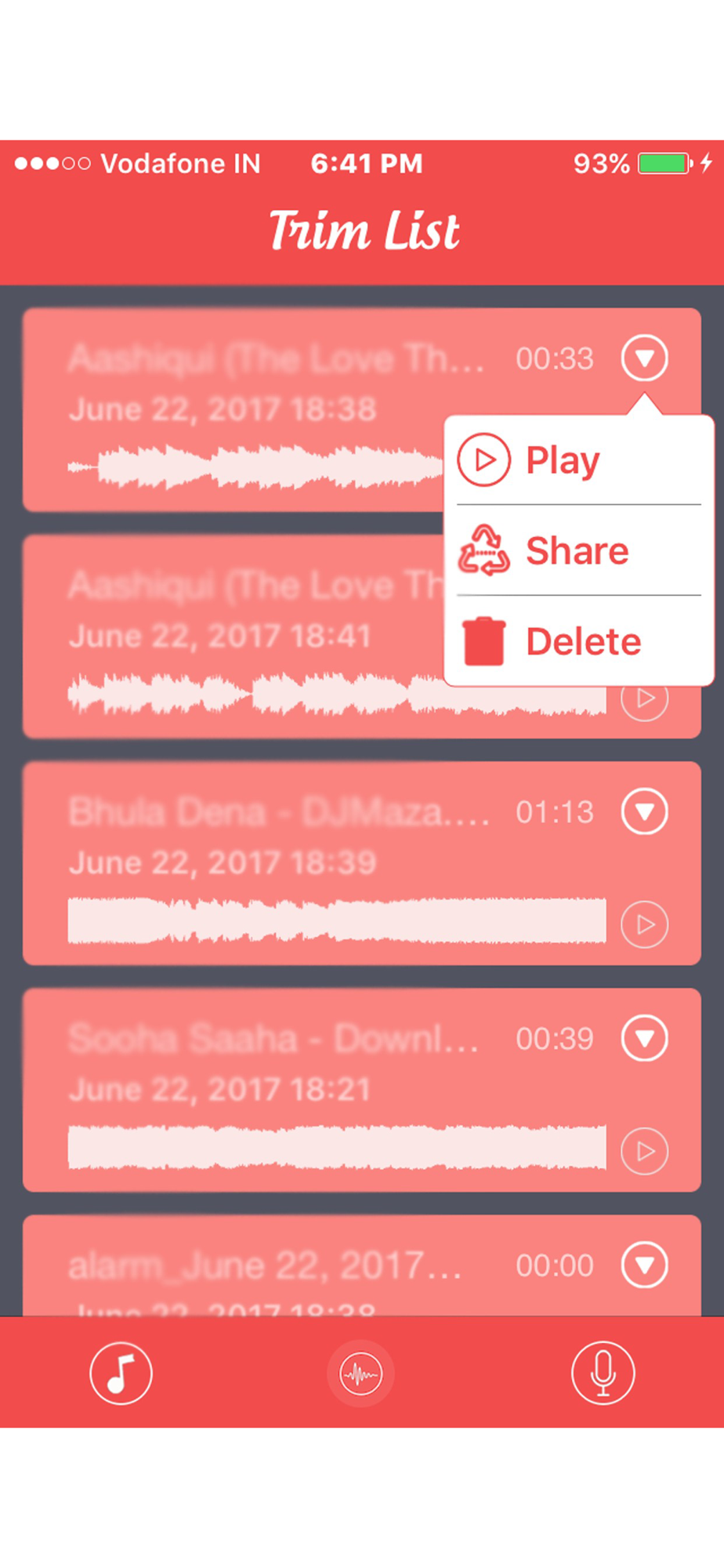 · Application will store ,display and play your merged & trimmed songs