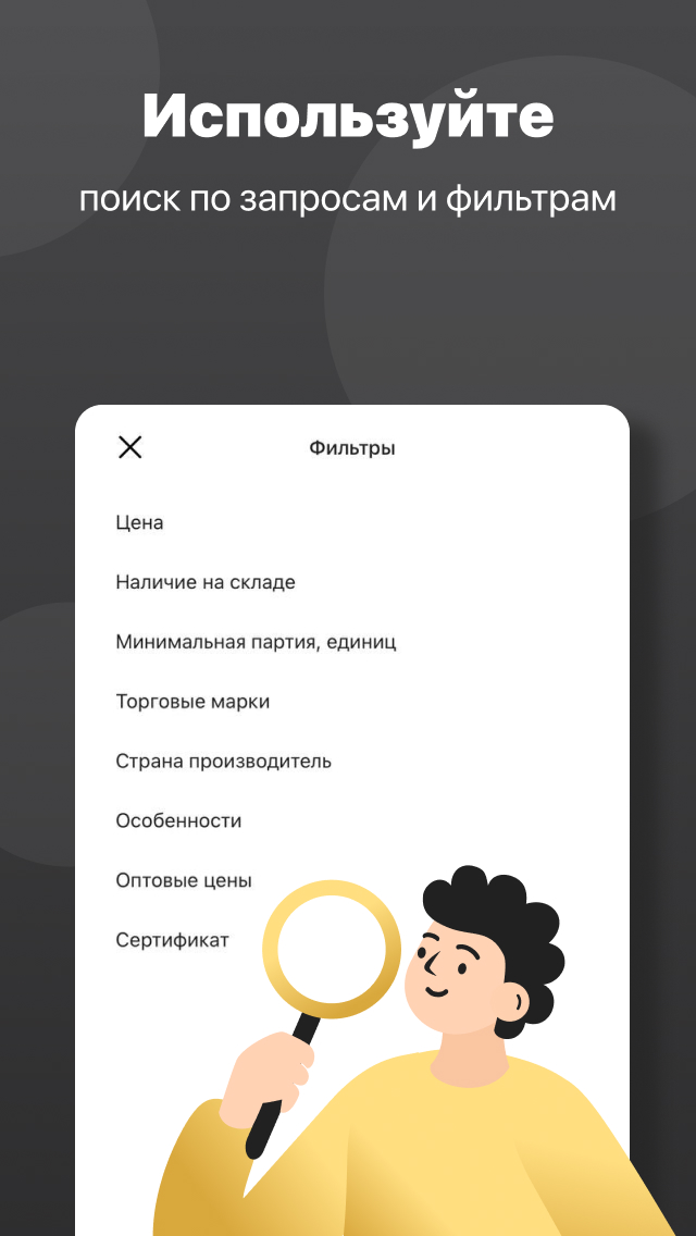 Вы можете заказать товары по оптовым ценам для вашего бизнеса. Мы уже работаем с крупными торговыми центрами, небольшими магазинами, интернет-площадками (такими, как My-shop.ru, ONLINETRADE.RU, «Кораблик», «Чики Рики»).