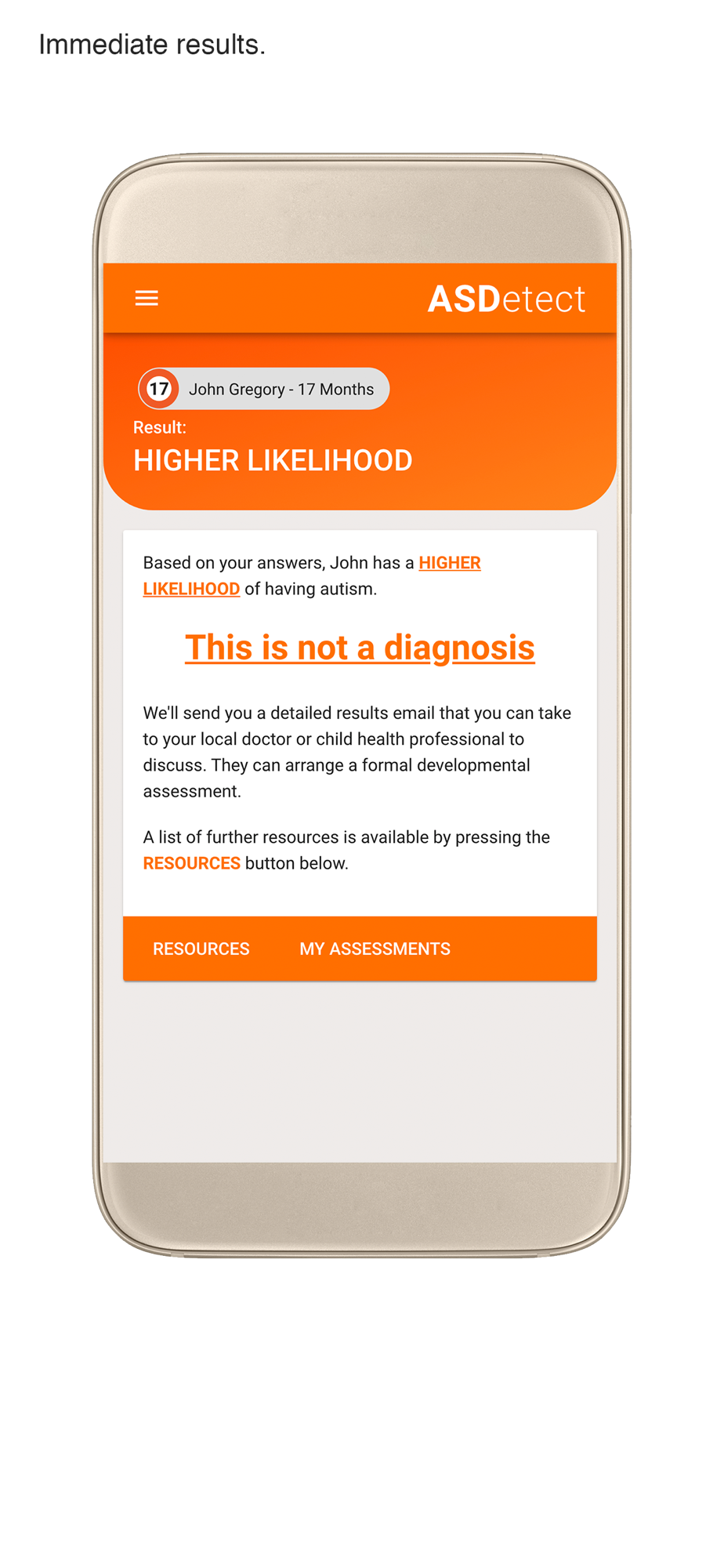 As autism and related conditions can develop over time, the app contains 3 assessments: for children aged 12, 18 and 24 months.