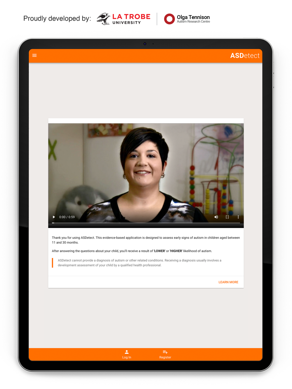 This award-winning app is based on comprehensive, rigorous, world-class research conducted at the Olga Tennison Autism Research Centre at La Trobe University, Australia. The research underlying this app has proven 81% - 83% accurate in the early detection of autism.