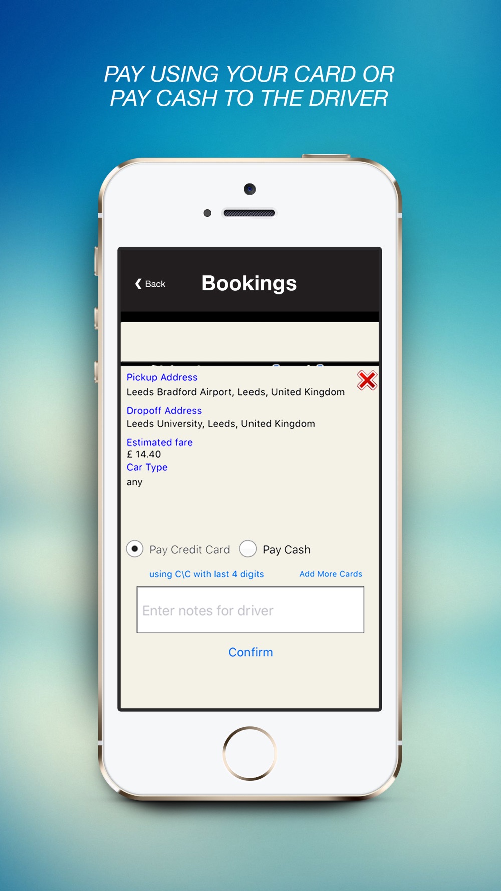Book a cab instantly in Bristol with a few taps of a button with the Bristol Direct Cars app. Save your favorite journeys for convenient and quick bookings in the future.