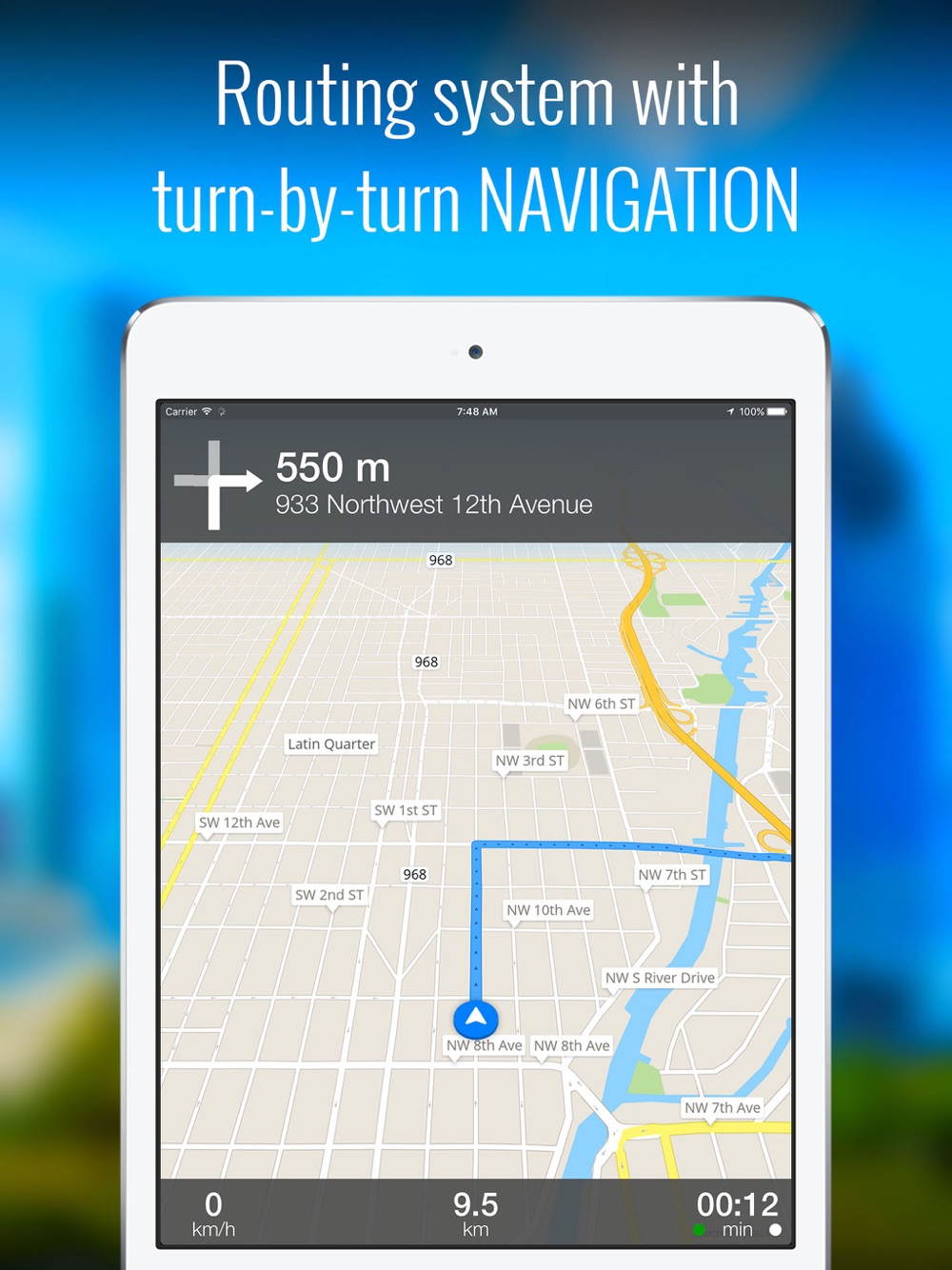 • Precise routing system with turn-by-turn navigation and real-time multilingual directions.