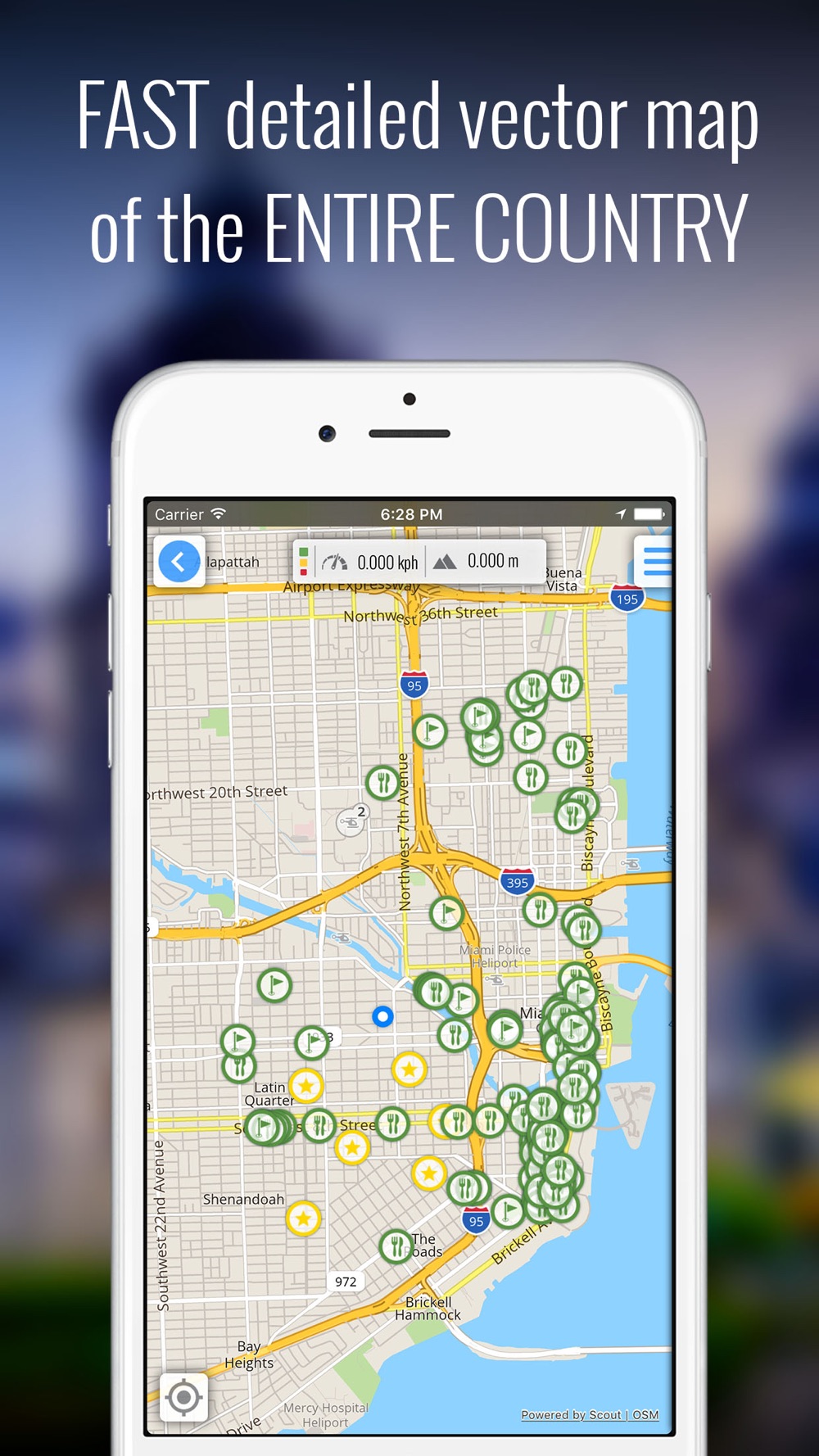 • Contains a vastly detailed information since it is based on OpenStreetMap.org data and enhanced by the Skout framework.