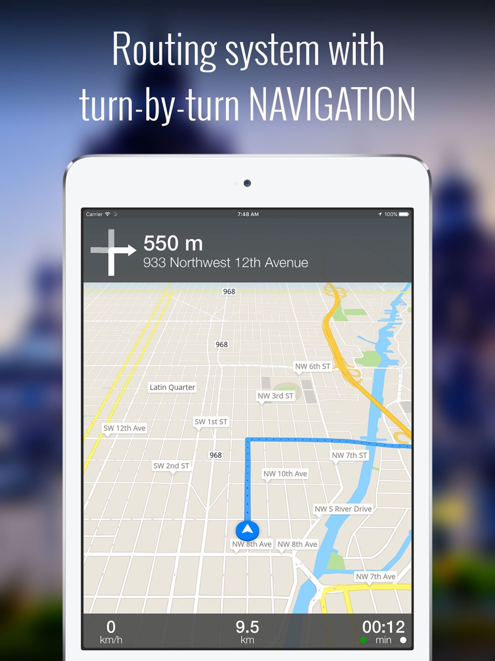 • Precise routing system with turn-by-turn navigation and real-time multilingual directions.