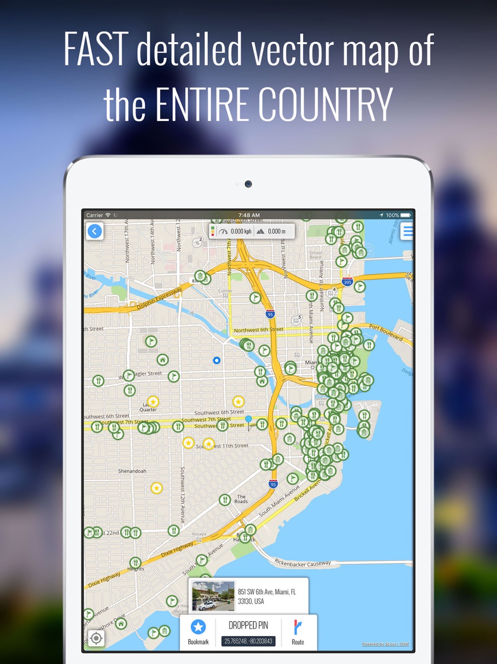 Maps for the entire country, and travel content for Mexico City are included for free when you download the app. Travel content for every other city is available through In-App Purchases.