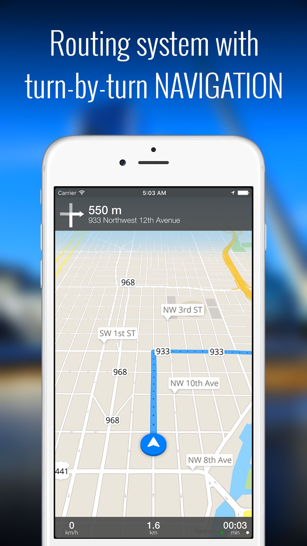 • Precise routing system with turn-by-turn navigation and real-time multilingual directions.