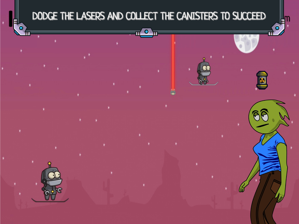 Travel the skyways of planet Derpt on your hoverboard through laser infested zones to collect the fuel cells!