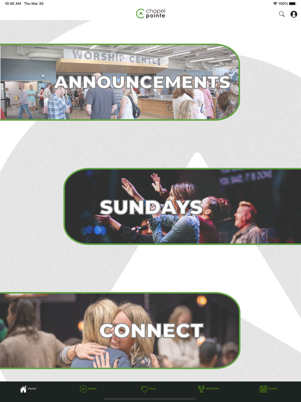 Connect and engage with the Chapel Pointe community through the Chapel Pointe app! Download our app to discover messages, upcoming events, resources, give conveniently, or learn more about us. Chapel Pointe is a life-giving community of transformed followers of Jesus.