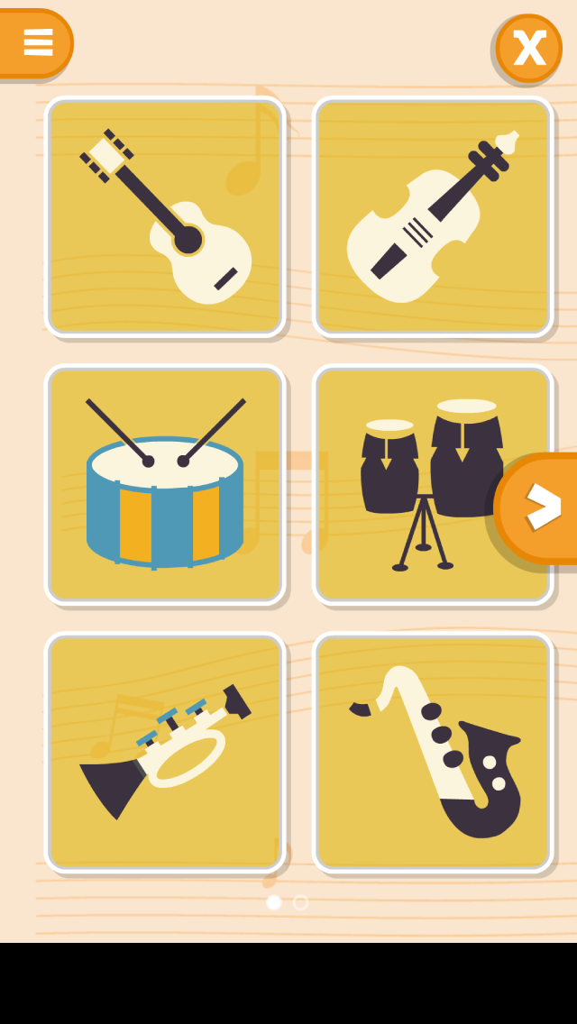 The app is designed in different screens where children select the image of an instrument and a voice will tell them the name of the chosen instrument and the sound belonging to that instrument will be played.
