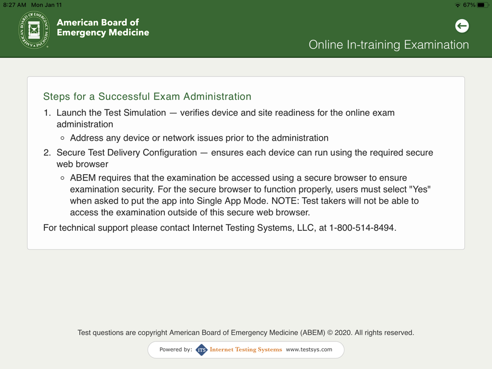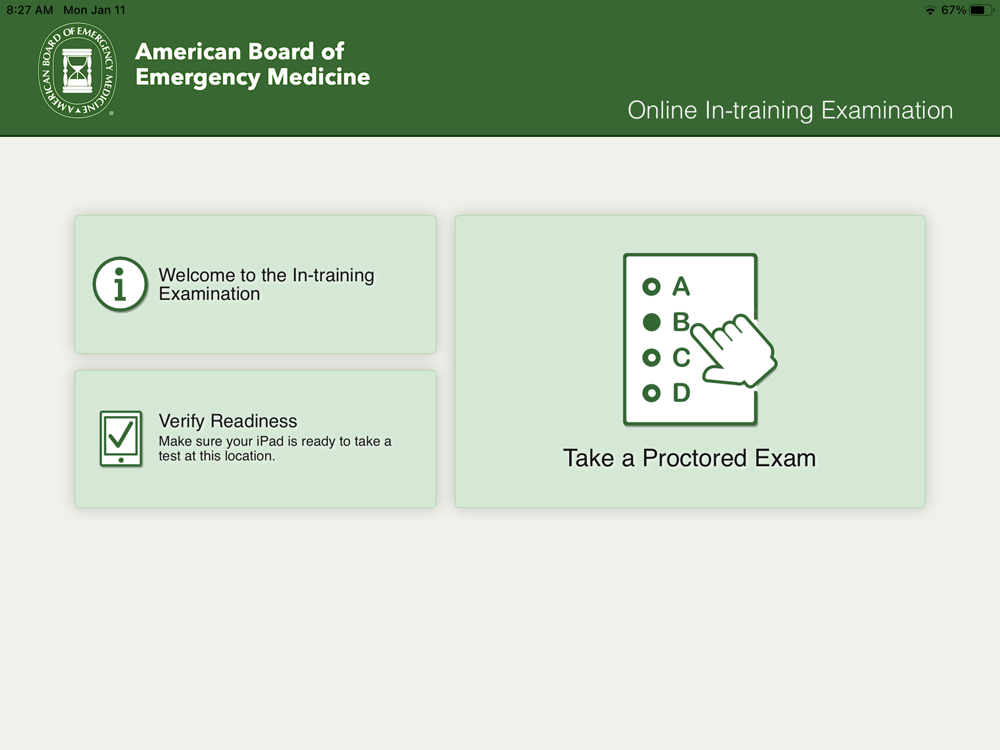 ABEM develops and administers an In-training Examination (ITE). It is offered annually on the last Wednesday in February to all ACGME-accredited and RCPSC-accredited Emergency Medicine residency programs for a small fee. Programs are not required to participate in this examination.