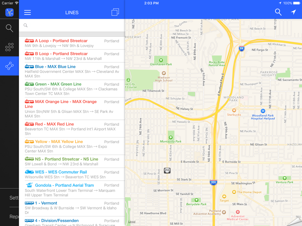 ezRide Portland offers offline trip planning in the public transport system of Portland TRIMET.