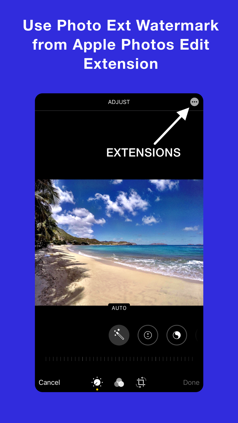 To use this extension, open the Apple Photos app, select any photo, then Edit photo, tap the extension button, and select the extension.