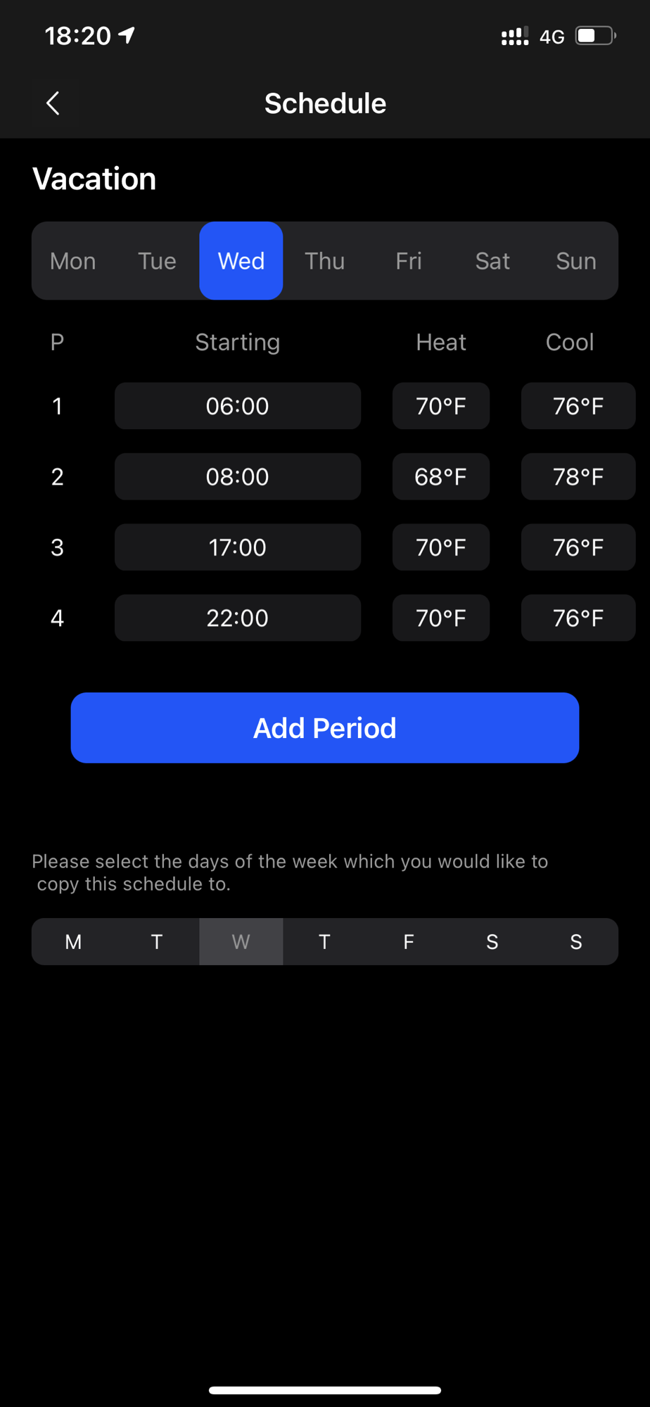1.Program a schedule of unlimited temperature settings for different hours, days, and weeks