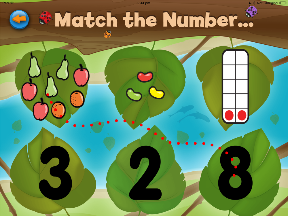An fun app for learning to match numbers and number patterns.  Children learn to track between numbers and number representations.   Unlock multiple representations with the Touchtronic Bug.  Slide the bug across the screen and use clicker for additional functionality.  For children aged 4+.