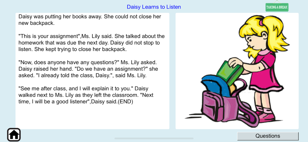This App is designed is to encourage third graders to start with basic comprehension skills. Just give this app to your children and watch them read anywhere, any time. Goes with the pace of the child. Can be used while travelling also.