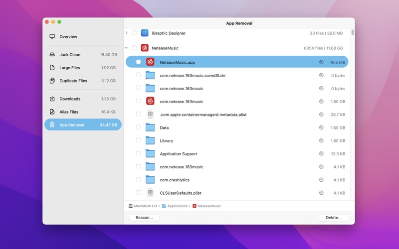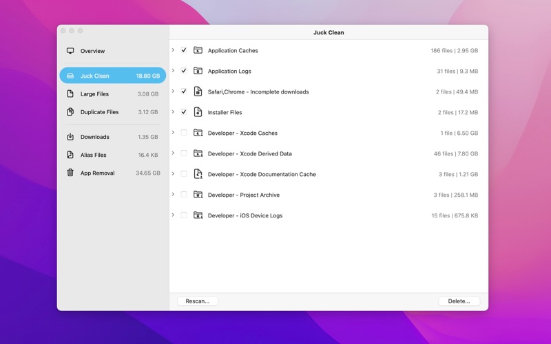 Scan and clean system junk files. (Include: caches, logs, incomplete downloads, etc)
