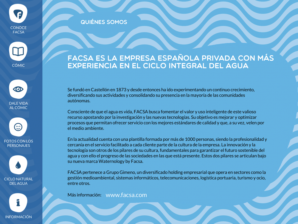 Aumenta todos tus conocimientos sobre El Ciclo Integral del Agua de una forma divertida, sencilla y fascinante de la mano de FACSA: la empresa privada española con más experiencia en la gestión del agua.