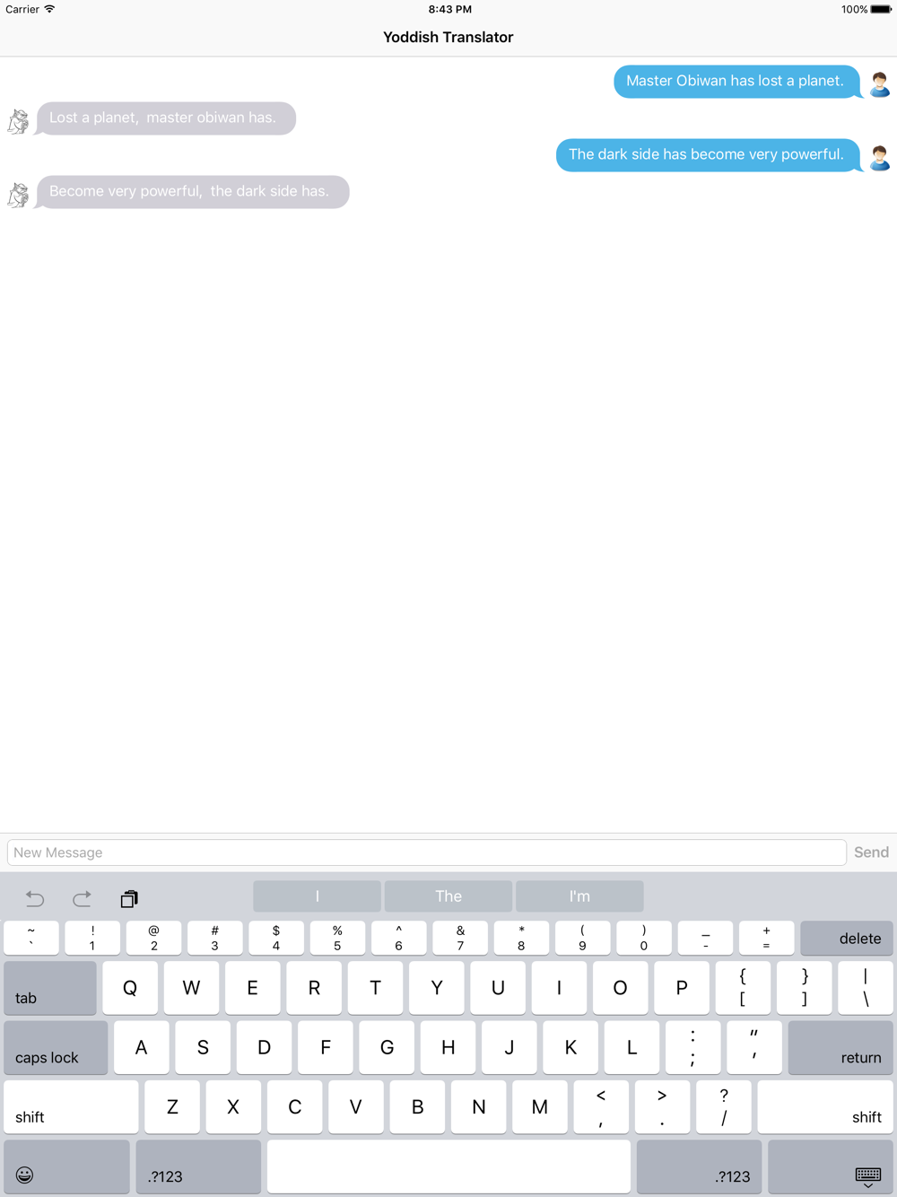 Yoddish translator rearranges sentences into OSV (Object Subject Verb) structure. Just type in normal sentences in English and Yoddish translator will rearrange it in OSV structure and send it back to you! Very fun and educational tool for children of all ages.