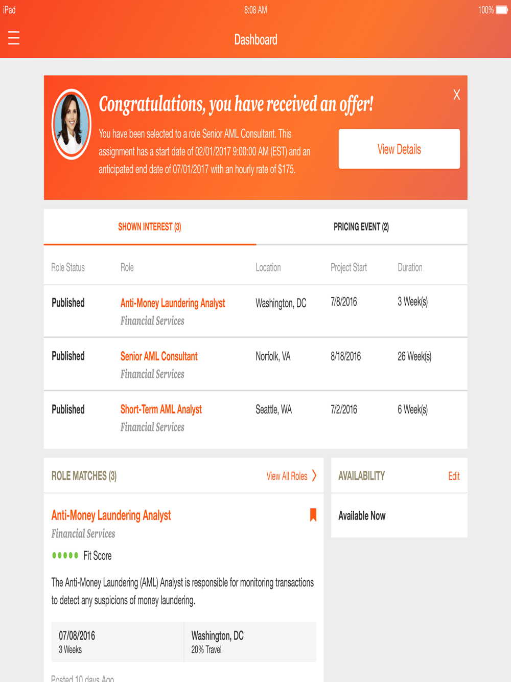 The Talent Exchange app seamlessly takes you from searching and showing interest in open roles, to joining a project, to completing your time and expenses—leaving you more time to focus on the work you enjoy.