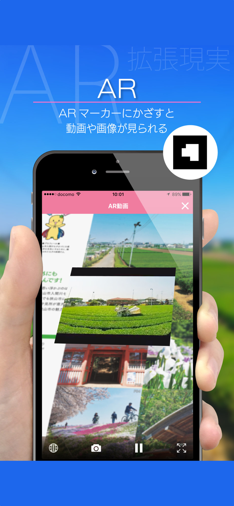 専用のARマーカー(ARを表示するためのマーク)を読み取れば、写真や動画を写しだす「AR」機能を体験することができます。