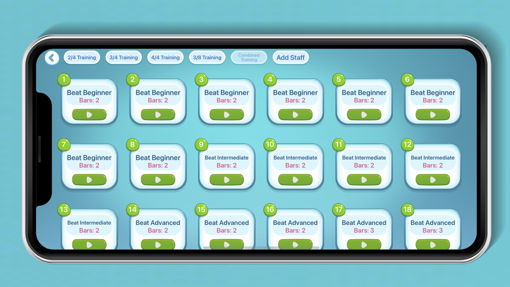 1. It includes 5 different kinds of musical notes dictation (single pitch, dual pitches, chord, interval and melody), 4 main rhythm training (2/4, 3/4, 4/4, 3/8), 3 modules of sight singing for practitioners in music;