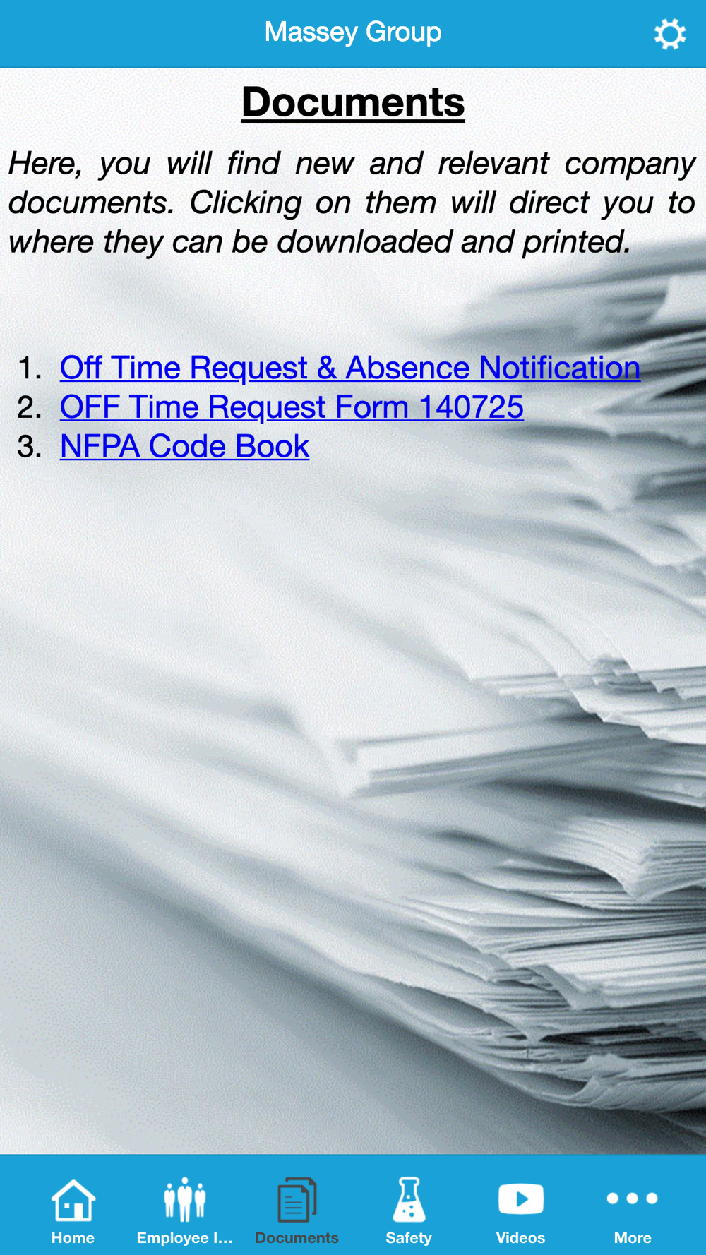 This app features resources for Massey Group employees. It contains a company documents section, contacts list, office locations and information, information regarding the clinic for employees, links to the company websites, and a few other features that will keep you connected and informed!