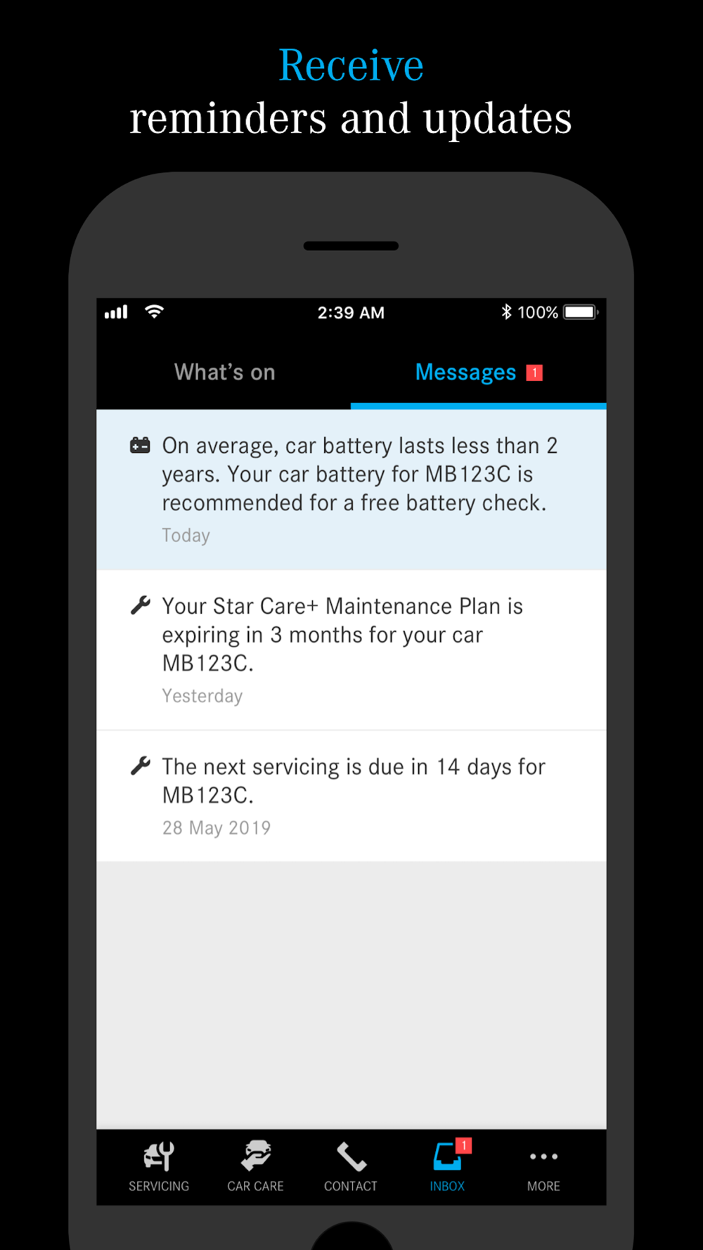 • Enjoy priority on exclusive promotions for Aftersales services & packages and MercedesBoutique merchandise (in-app purchase available)