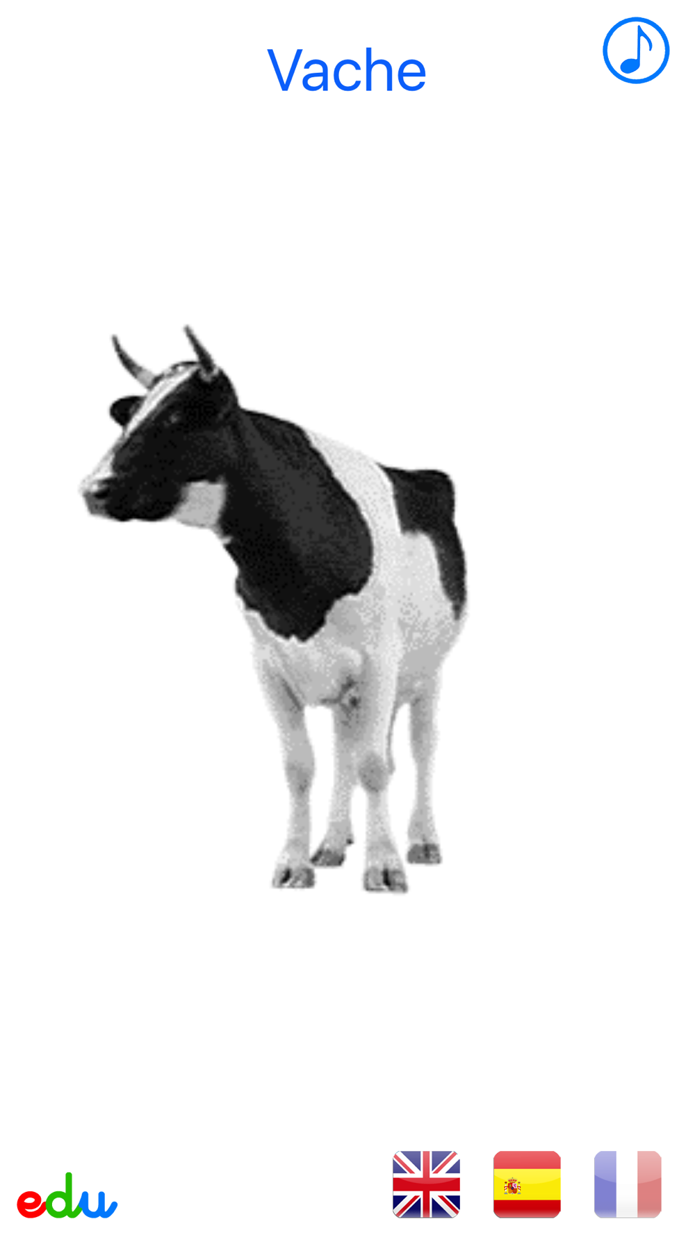 Ideal for babies, toddlers and preschoolers. Simple and happy animated animals app. Young kids or toddlers learn interesting animals and their real-life sounds. They touch animals to make them move. They can even change language to discover the musicality of foreign languages and pick up new words. A great opportunity to learn some Spanish or French in addition to English.