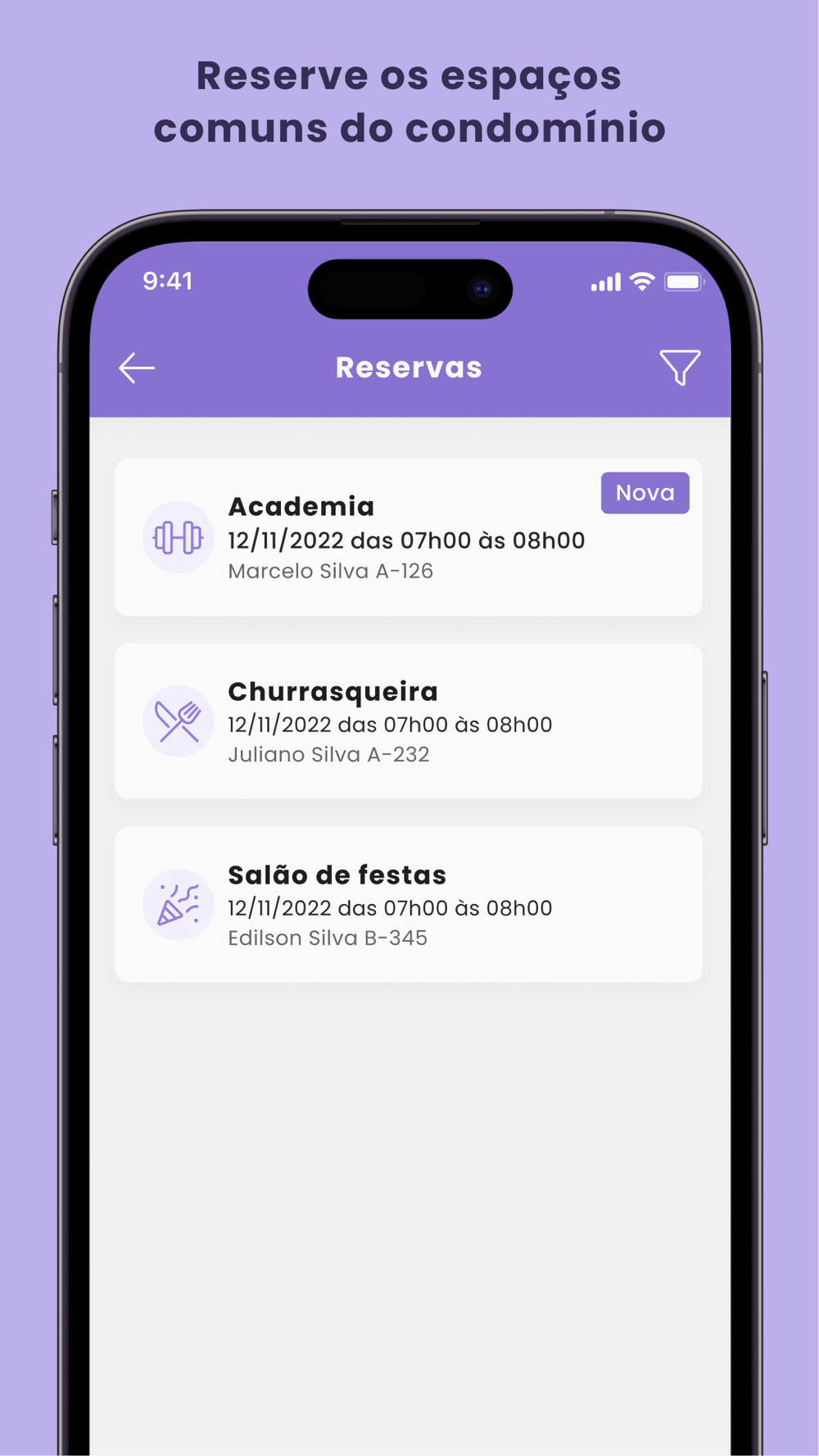 • RESERVAS: Moradores realizam reservas dos espaços comuns (churrasqueiras, salão de festas…) através do app uCondo. Chega de ligar na portaria ou síndico para consultar a agenda dos espaços.