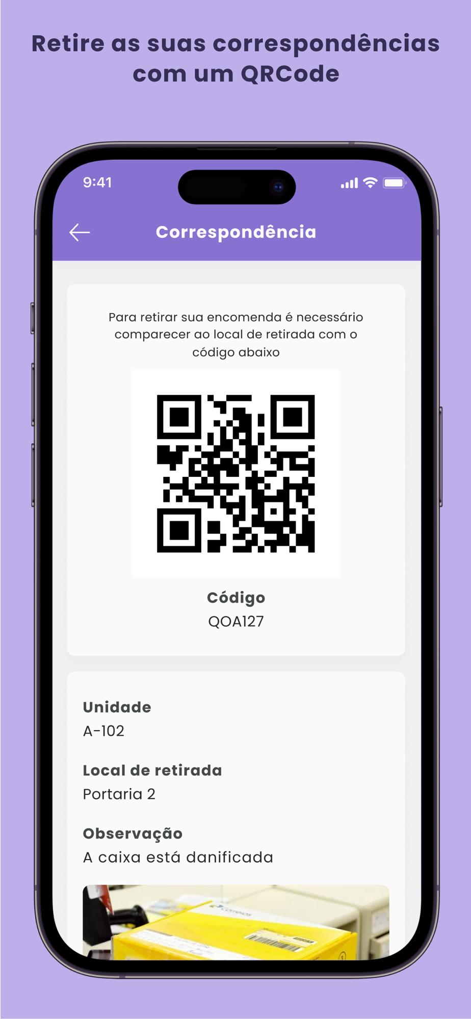 • CORRESPONDÊNCIAS: Ansioso pela entrega da encomenda que está para chegar? Porteiros tiram fotos dos pacotes e o morador recebe um QRCode para retirada do mesmo na portaria. Chega de caderninhos com letras que ninguém entende.