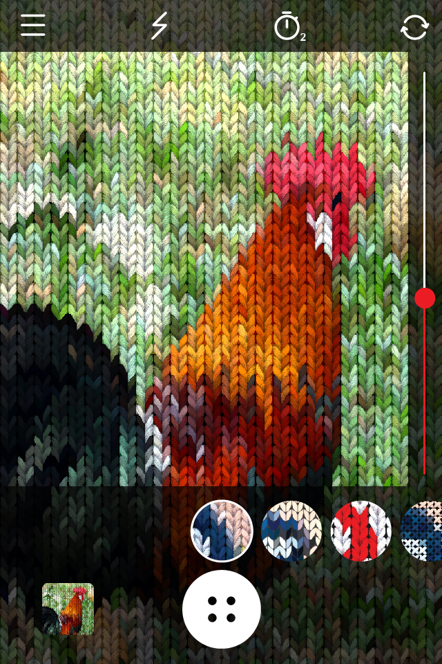 Thanks to the unique filters for mobile devices, you can convert images at the moment of shooting, not post processing; easily and quickly stylize photos in different patterns, like knitting, cross stitching, small plastic brick or pixel images, and so on.