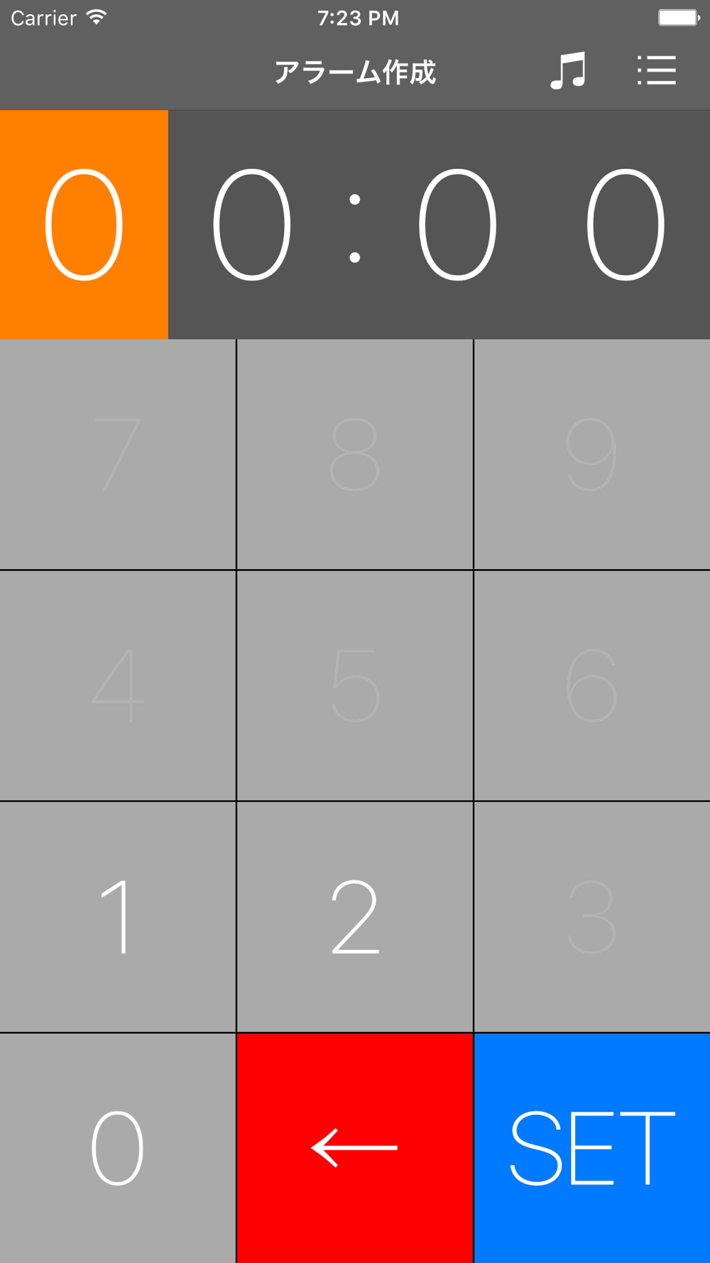 しかし、OneTimeAlarmではテンキーを使って設定するので簡単に素早く設定することができます。