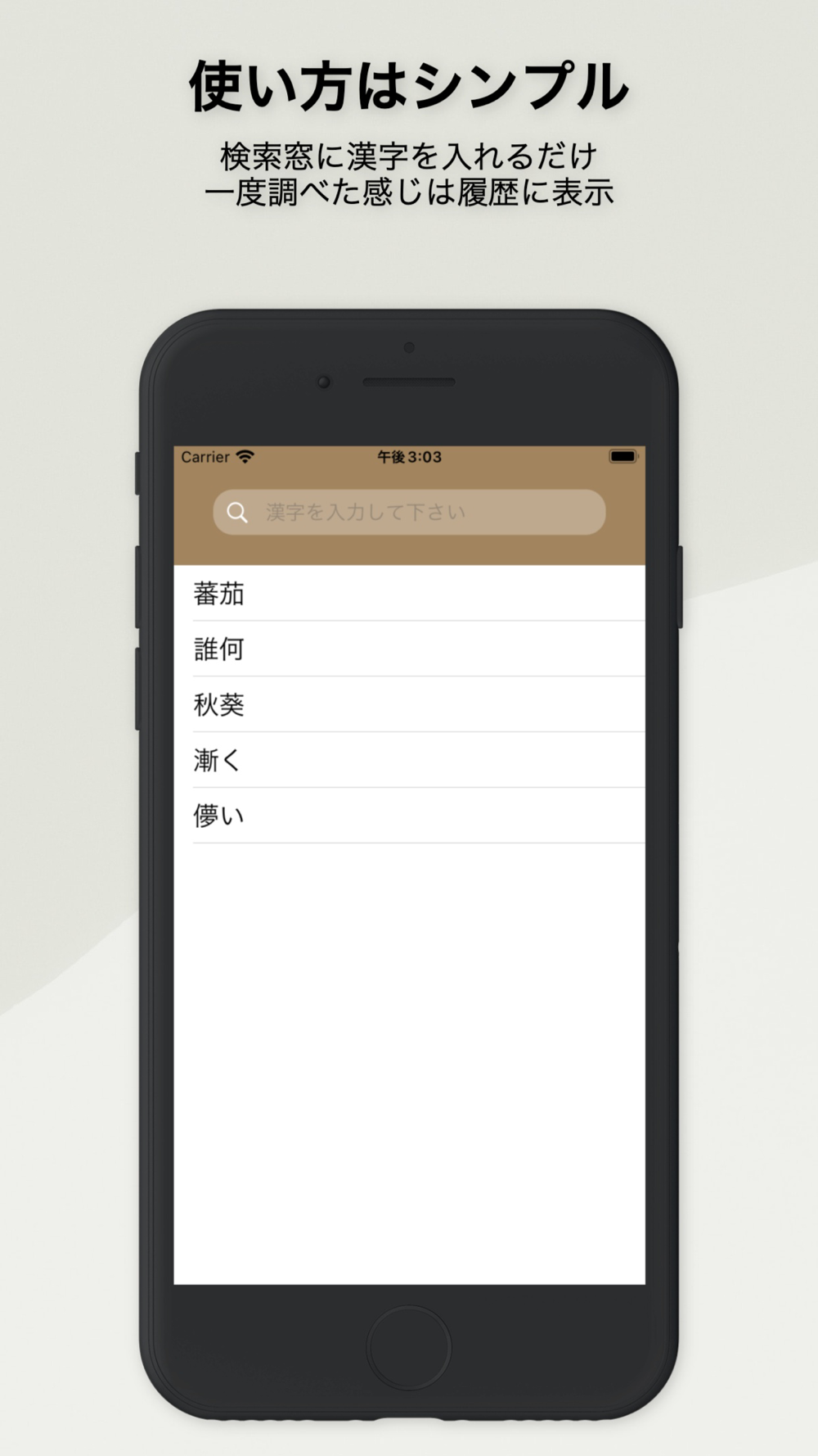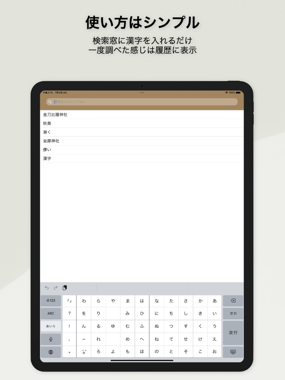 過去に検索した漢字の履歴を一覧で確認できます。必要な時に素早くアクセスできます。
