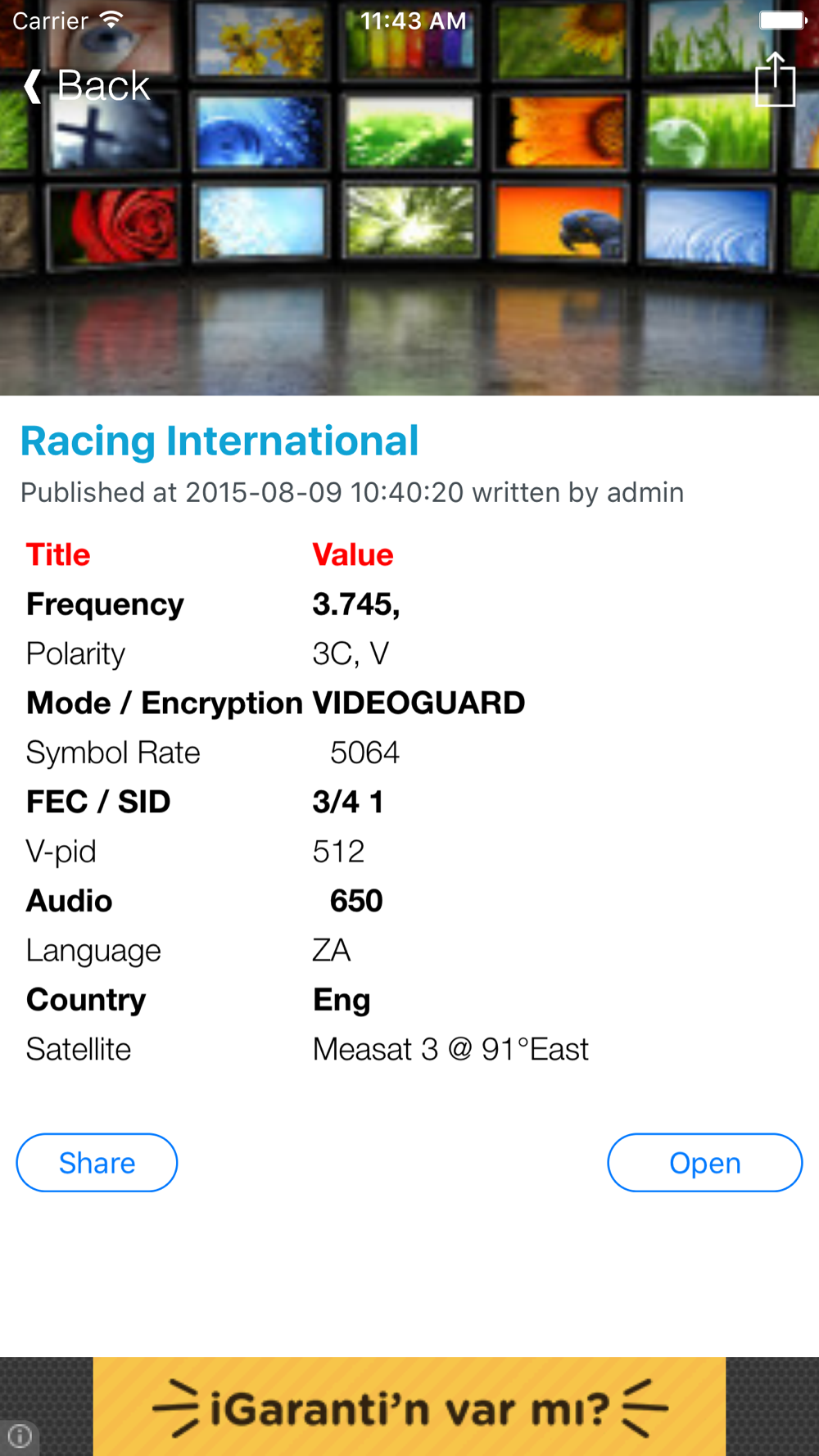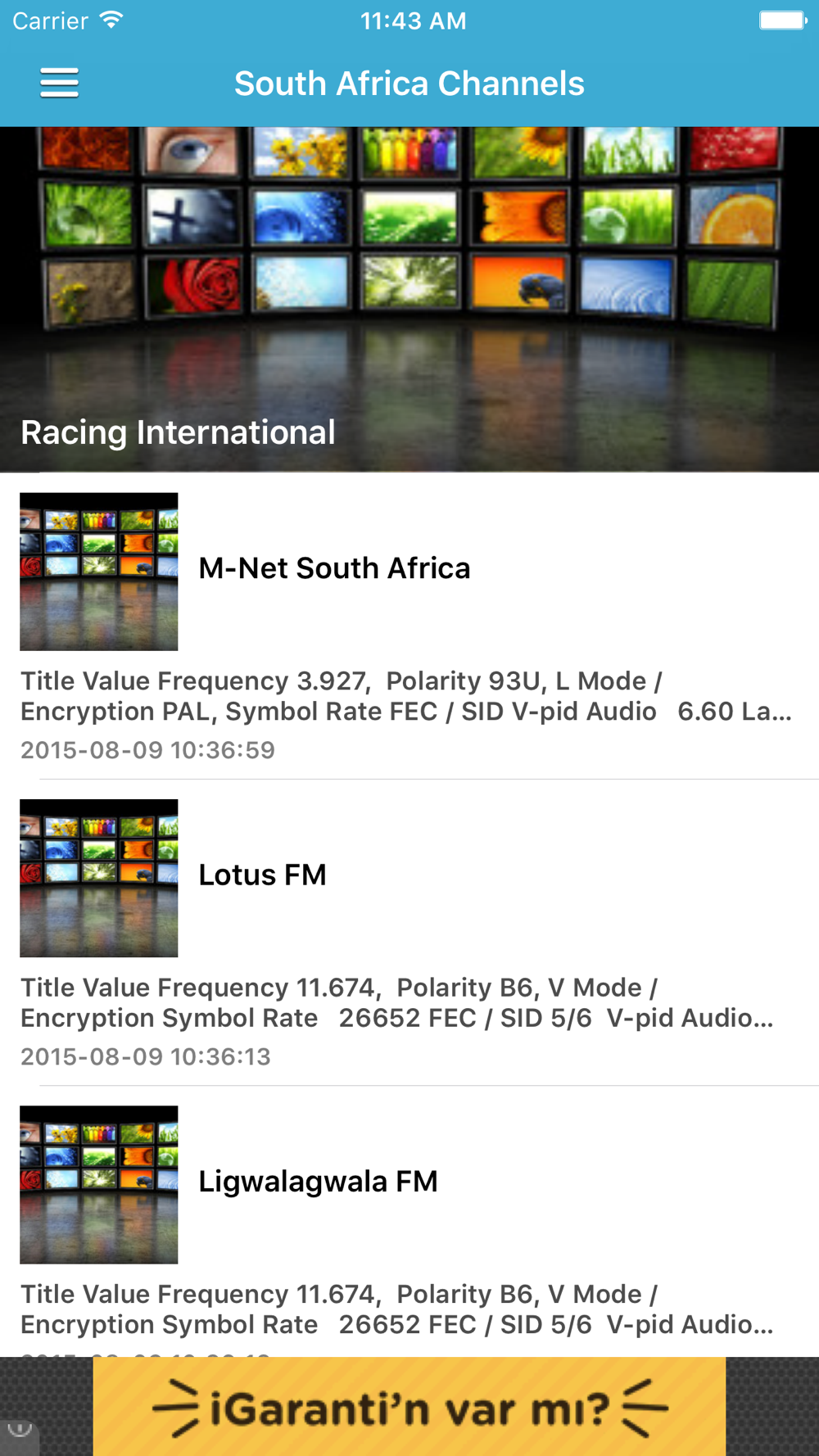 This application contains all necessary and actual information to adjust your satellite receiver.