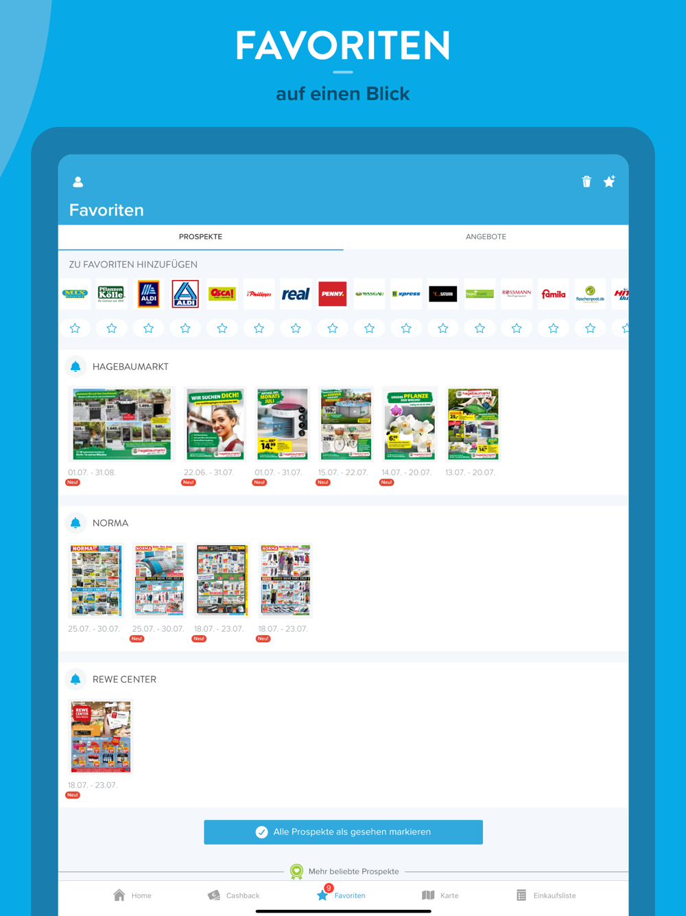 » Setze deine Favoriten und werde benachrichtigt, sobald neue Prospekte deiner Lieblingshändler vorhanden oder deine Lieblingsprodukte im Angebot sind.