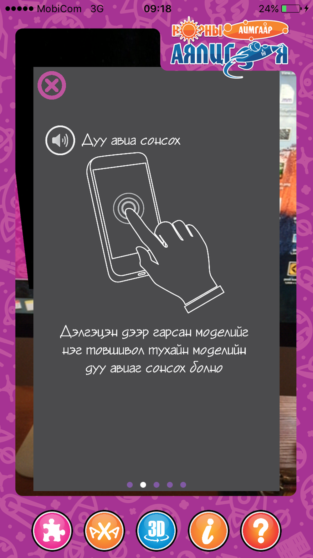 Энэхүү “Нарны аймгаар аялцгаая” ухаалаг карт нь хүүхдүүд бодитоор харах боломжгүй нарны аймгийн гарагуудыг 3 хэмжээст хөдөлгөөнт дүрслэлээр харуулж ид шидийн мэт ертөнцөөр аялуулахаас гадна мэдлэг шалгах АХА тоглоом, сэтгэхүй хөгжүүлэх эвлүүлдэг тоглоом зэргийг багтаасан.