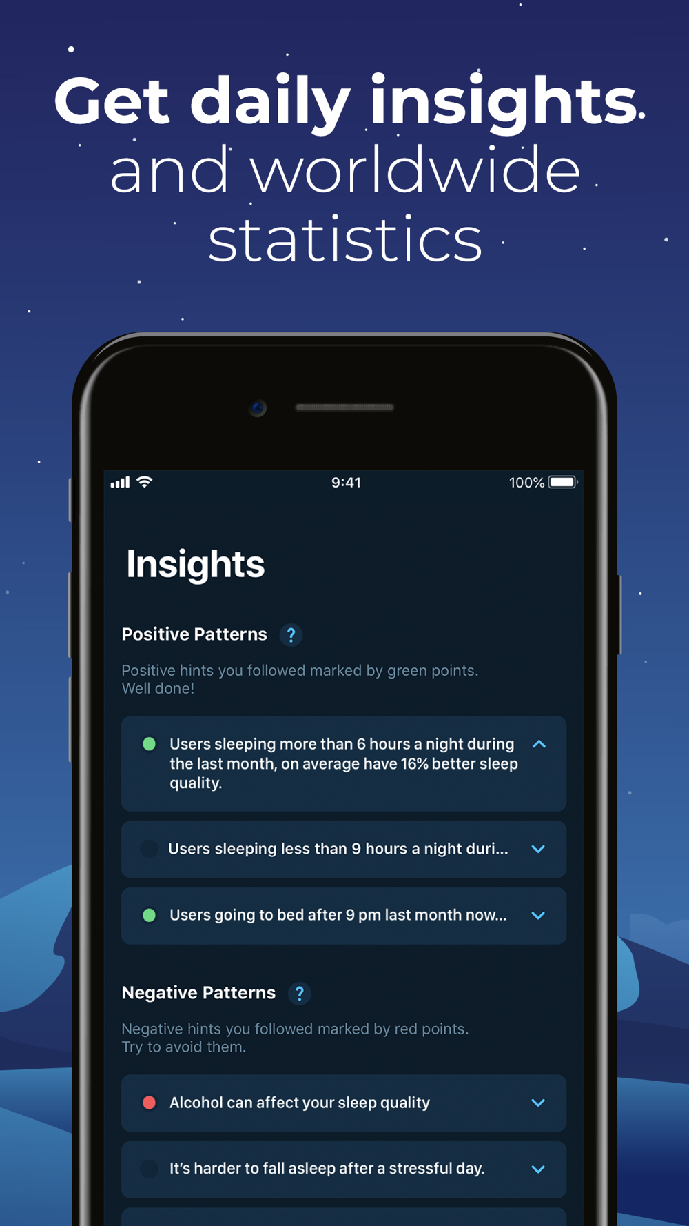 - Receive daily personal sleep advice and explore worldwide sleep statistics with "Insights"