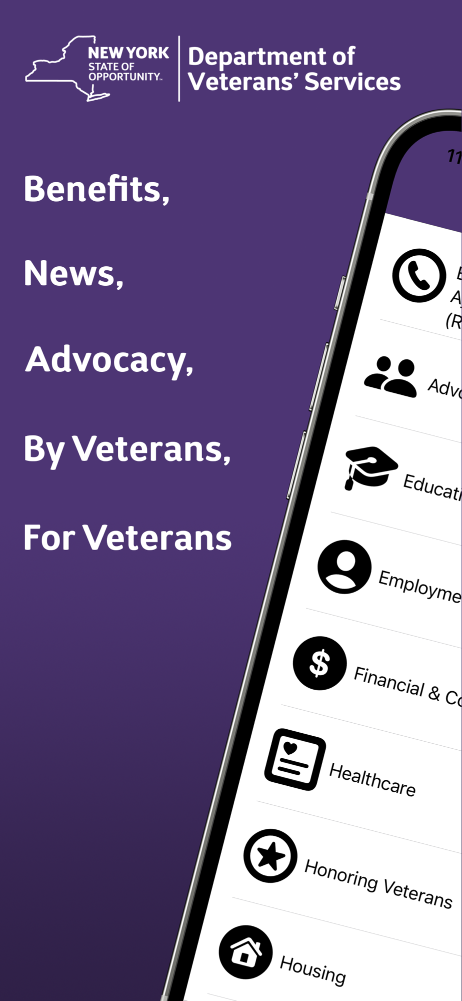 The New York State Department of Veterans’ Services (DVS or Department) advocates on behalf of New York’s Veterans and their families, as individuals and as a group, to ensure they receive benefits granted by law for service in the United States Armed Forces.