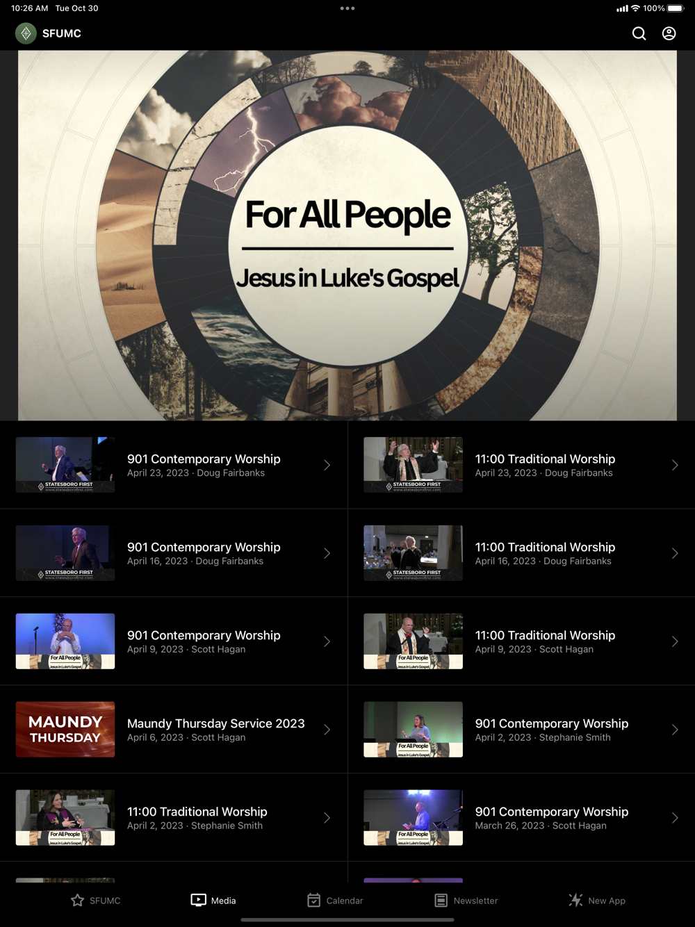 This App features a collection of recent messages and full worship service videos from Statesboro First in Statesboro, GA. Sermons are recorded live on Sunday Mornings during worship services at the church.