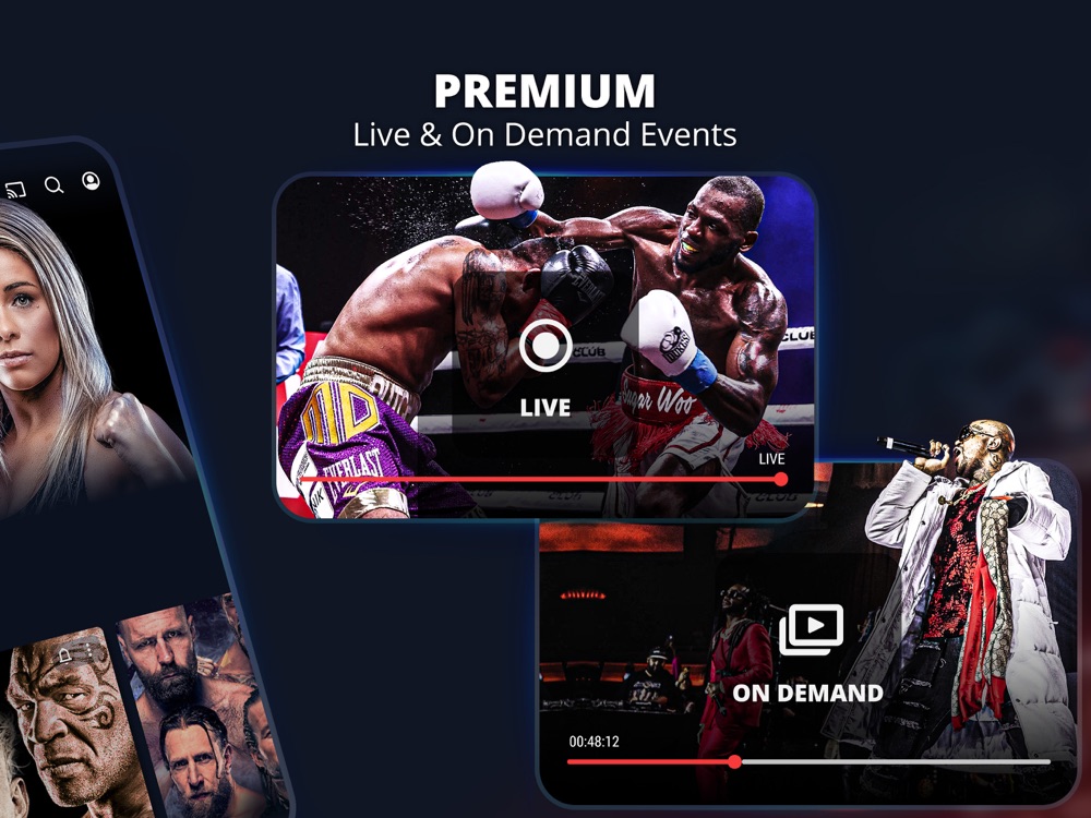 • Watch premium live sport and entertainment pay-per-views from AEW, BKFC, Showtime Boxing, TopRank/ESPN, PBC/Fox, NJPW, Impact Wrestling, GCW, Rizin, FIFA, BIG3 and many more