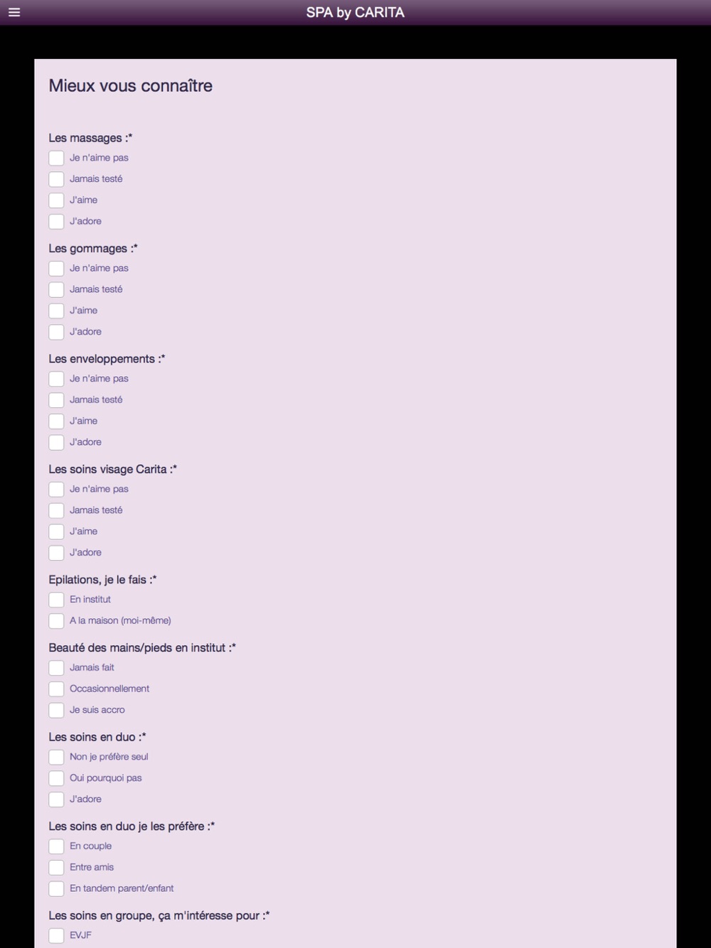 Retrouvez dans notre application l'ensemble des prestations, des massages proposés, des liens pour nous géolocaliser et prendre des rendez-vous et acheter des services en ligne, selection de photos de notre spa qui saura vous séduire.