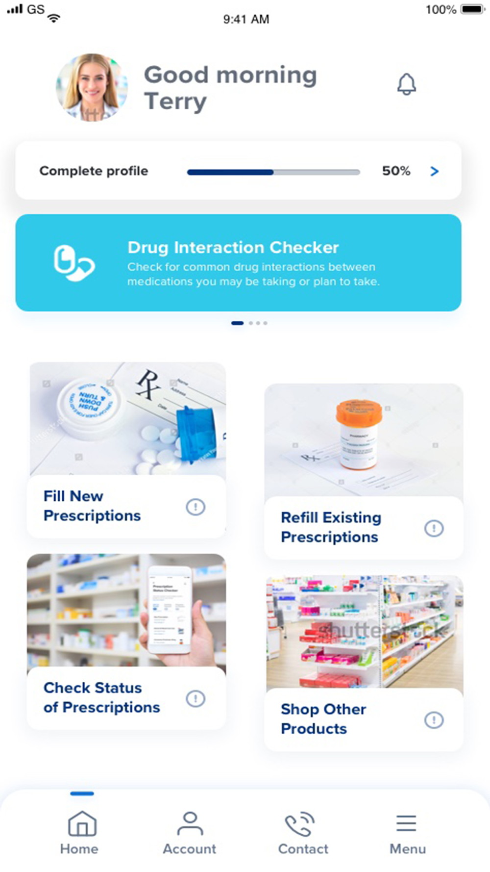 - Download the app and complete a profile so you are ready to process a prescription*.
