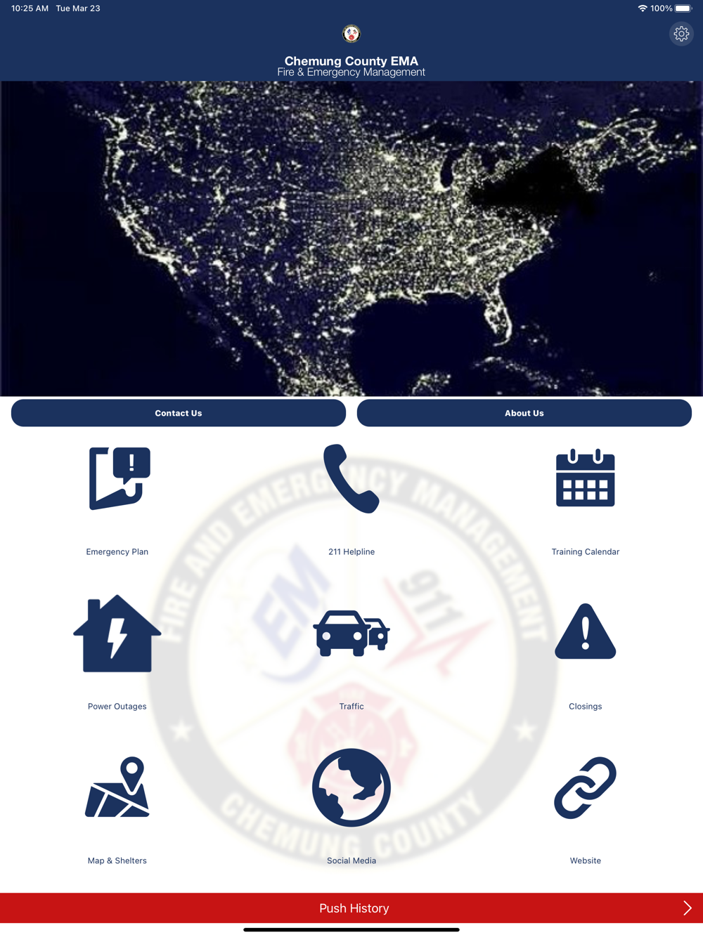The Chemung County, NY Office of Fire and Emergency Management has created the CHEMUNG CO. NY EMERGENCY ALERT/PREPARE mobile application to help our citizens be better prepared, and to have all the information they need during an emergency or disaster. Some of the links available in this app are: emergency alerts, local traffic and weather information and warnings, social media contacts, and preparedness information that will guide you to measures you can take NOW to be ready if disaster strikes. By empowering our residents and business communities through technology, Chemung County Emergency Management can aid in citizen preparedness by sharing tips and preparedness/prevention measures, and can gain better situational awareness during an emergency from people who are being affected, as the situation is evolving, when they use this app to report what they are seeing and experiencing.