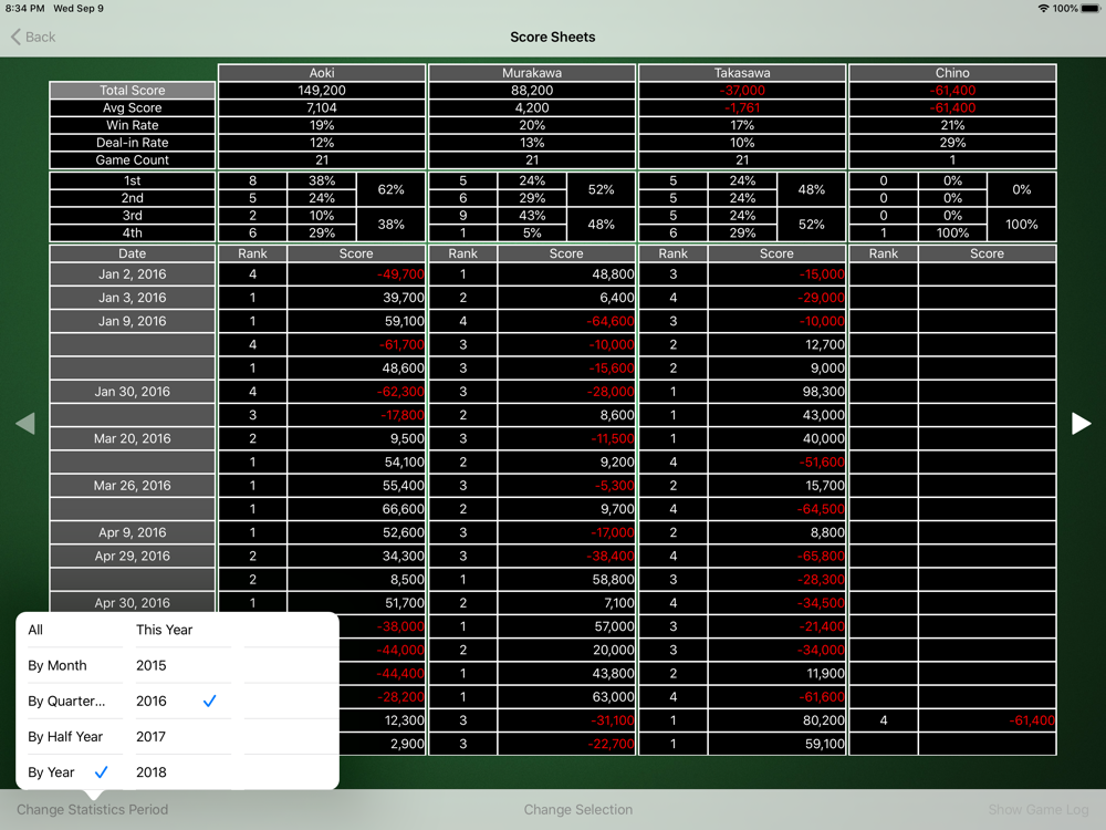 · Score Calculator: When someone wins, all you need to do is inputting the winning score. Other complicated calculation is processed automatically. In addition, you can chose input method from three ways: Direct, Constant and Wizard.