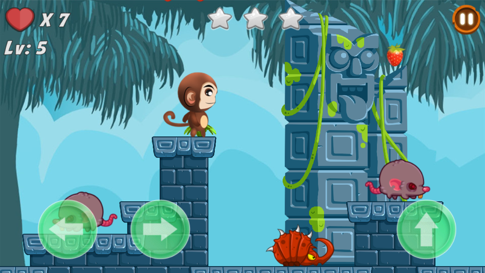 Help the little monkey king to escape the monster of the mysterious jungle and pick up all the fruits on the way.